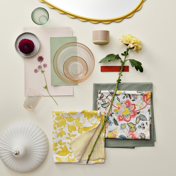 식사 공간은 자연에서 얻은 영감과 지속 가능한 가치가 만나 봄이 지닌 온기를 더한다. PELARKAKTUS 펠라르 칵투스 식기는 굽는 과정에서 기준을 통과하지 못한 도자기제를 분쇄해 재활용 공정 소재 70%와 새 소재 30%를 조합해 탄생했다. 버려질 뻔한 재료가 새로운 쓰임을 얻는 순간, 소재는 또 한 번의 가능성을 만나 식탁 위에서 아름답게 피어난다.