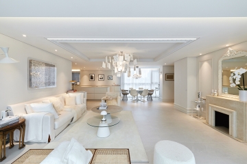 대치동 동부센트레빌 201.3㎡는 오래된 아파트가 지닌 클래식한 디자인과 구조를 리모델링하여 일상의 안락함을 선사하고자 한 프로젝트이다. 가장 먼저 눈에 띄는 변화는 천장 몰딩으로, 기존의 두꺼운 몰딩을 마이너스 몰딩으로 교체해 답답했던 느낌을 덜어내면서 천장선도 한층 깔끔해졌다.